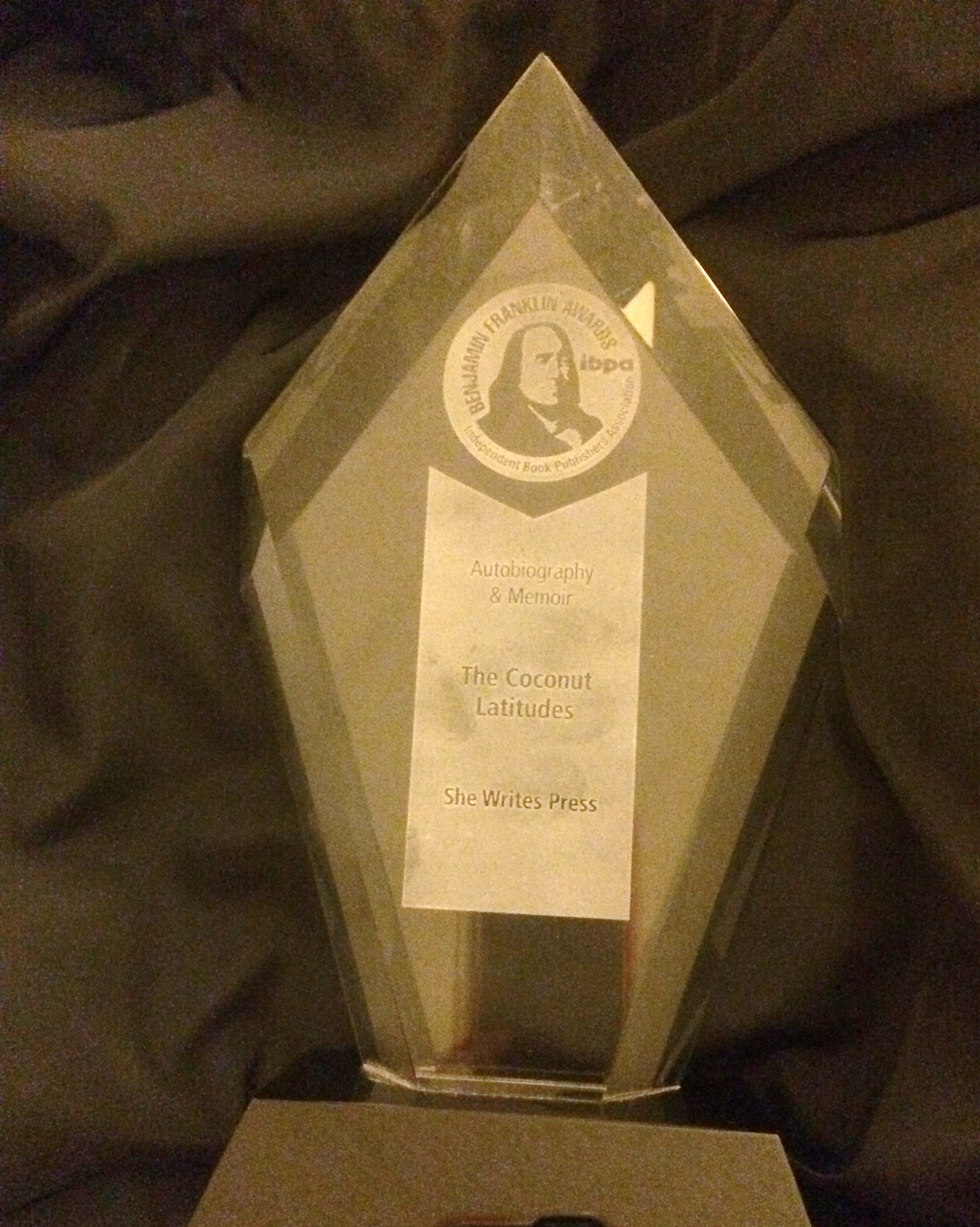 As it turned out, I won Gold Award for memoir category, and two days later I had to unpack my bag at the airport when leaving Austin. My crystal award and its sharp obelisk shape had, not surprisingly, caught the eye of the TSA agent as it went through the scanner, reflecting potential danger. I admit I had noticed the large sign behind him that shouted: “NO pointed objects allowed on the aircraft.” Oddly, my shiny (and pointy-toed) shoes didn’t get his attention and he did let me keep my trophy after determining I seemed unlikely to wield it as a weapon mid-flight.